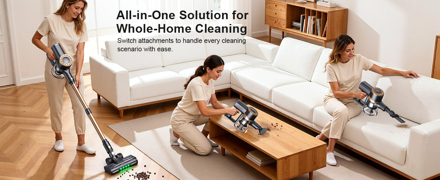 Προσαρμοστική Ισχύς Καθαρισμού: Επιλέξτε από τρεις ρυθμίσεις ακριβείας - Max (30kPa) για βαθύ καθαρισμό, Mid (20kPa) για καθημερινή ακαταστασία και Eco (15kPa) για αθόρυβη συντήρηση. Απόδοση Μακράς Διάρκειας: Η μπαταρία υψηλής χωρητικότητας 6×2200mAh προσφέρει έως και 35 λεπτά συνεχούς καθαρισμού - ιδανική για κάλυψη ολόκληρου του σπιτιού. Βελτιστοποιημένος Έλεγχος Θορύβου: Λειτουργεί με μόλις 68dB σε λειτουργία Eco, εξασφαλίζοντας αθόρυβη λειτουργία που δεν θα διαταράξει τις δραστηριότητες του σπιτιού.