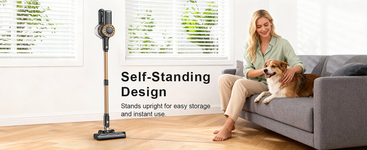 Πραγματική άνεση χωρίς χέρια: Στέκεται με ασφάλεια μόνο του χωρίς στήριξη στον τοίχο - χωρίς τρύπημα ή ζημιά στους τοίχους σας. Άμεση παύση και συνέχιση: Ιδανικό για την αντιμετώπιση διακοπών, όπως έκτακτες ανάγκες παιδιών, τάισμα κατοικίδιων ζώων ή άνοιγμα της πόρτας χωρίς να διακόψετε τη ροή καθαρισμού. Αποθήκευση που εξοικονομεί χώρο: Ο συμπαγής σχεδιασμός με ενσωματωμένη σταθερότητα εξαλείφει την ανάγκη για ειδικό χώρο στον τοίχο.